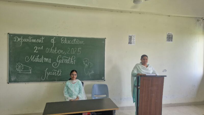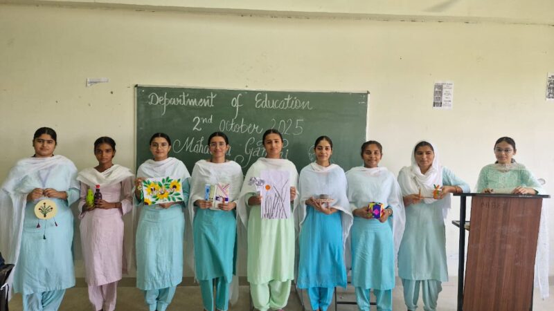The event, coordinated by Dr. Mudasir Amin and organized by Jasmeen Kaur and Namsheerat Kaur (B.A.B.Ed. 5th Semester), beautifully captured Mahatma Gandhi’s philosophy of Nai Talim—an education system that combines learning with productive work, creativity, and moral values.